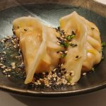 Gyozas de langostinos y hortalizas con vinagreta asiática